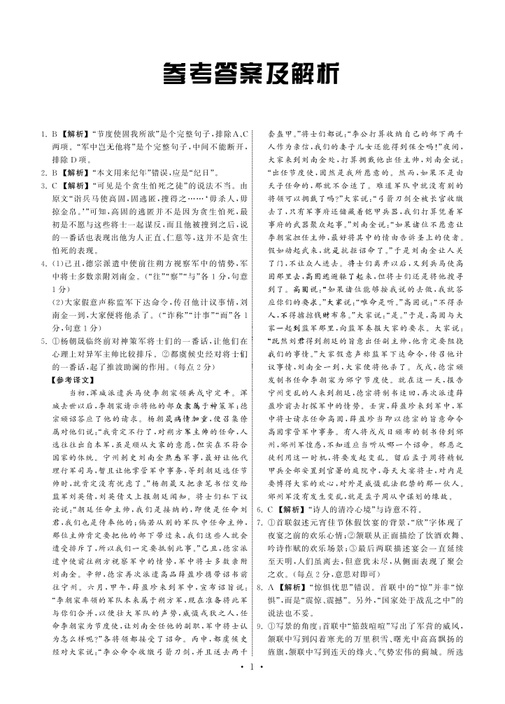 高三语文答案--甘肃省张掖市高三上学期第三次检测