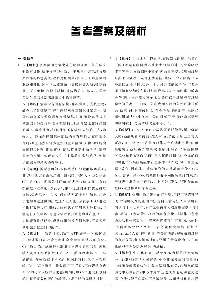 高三生物答案--甘肃省张掖市高三上学期第三次检测