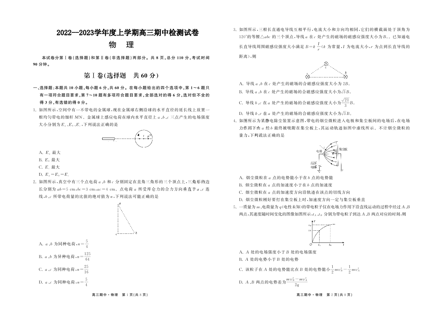 高三物理--甘肃省张掖市高三上学期期中检测