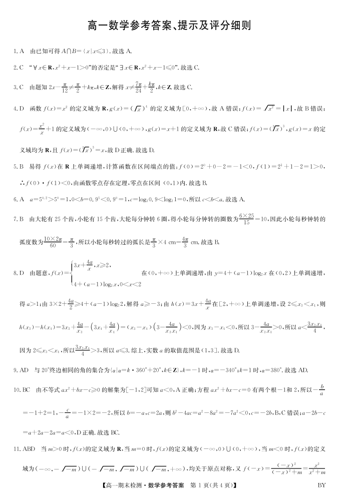 高一数学答案--甘肃省白银市靖远县第一中学2025-2026学年高一上学期1月期末