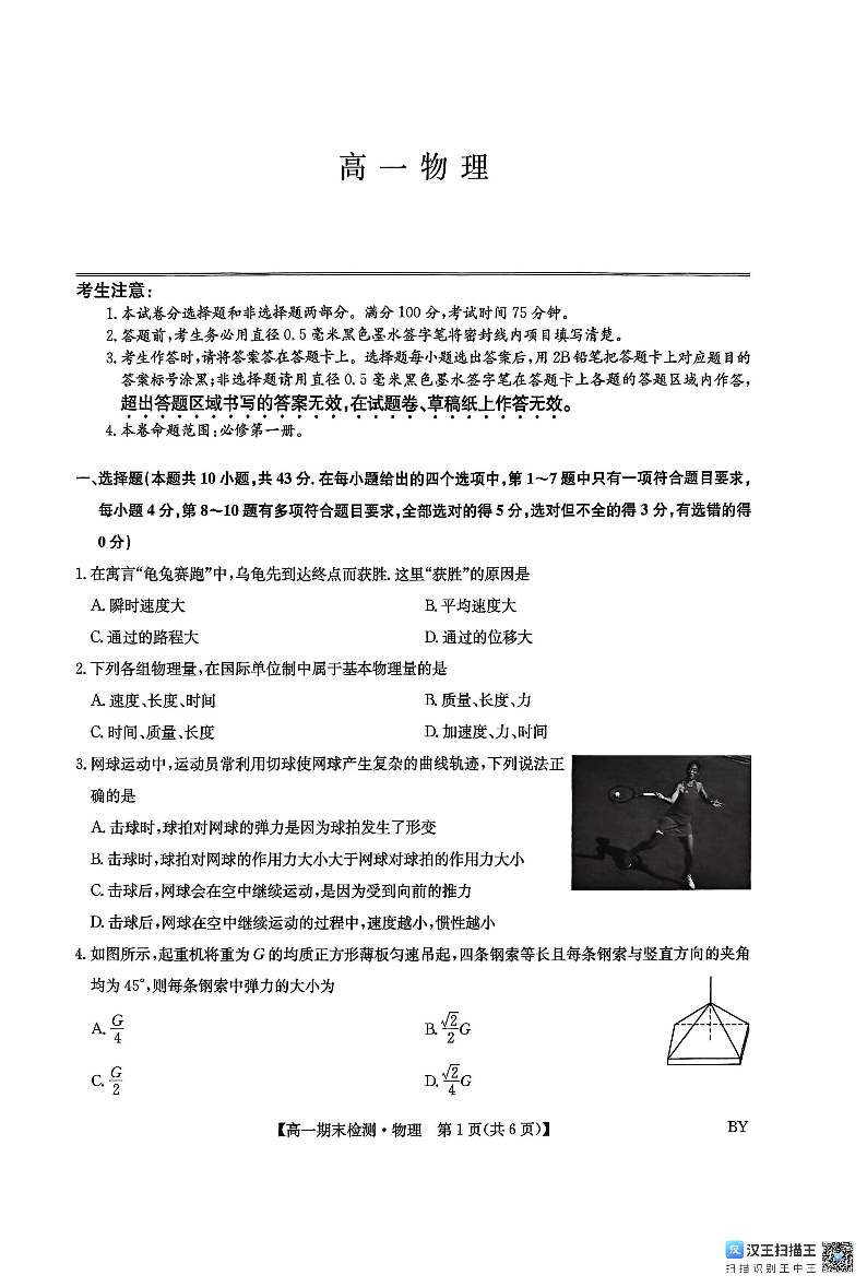 高一物理--甘肃省白银市靖远县第一中学2025-2026学年高一上学期1月期末