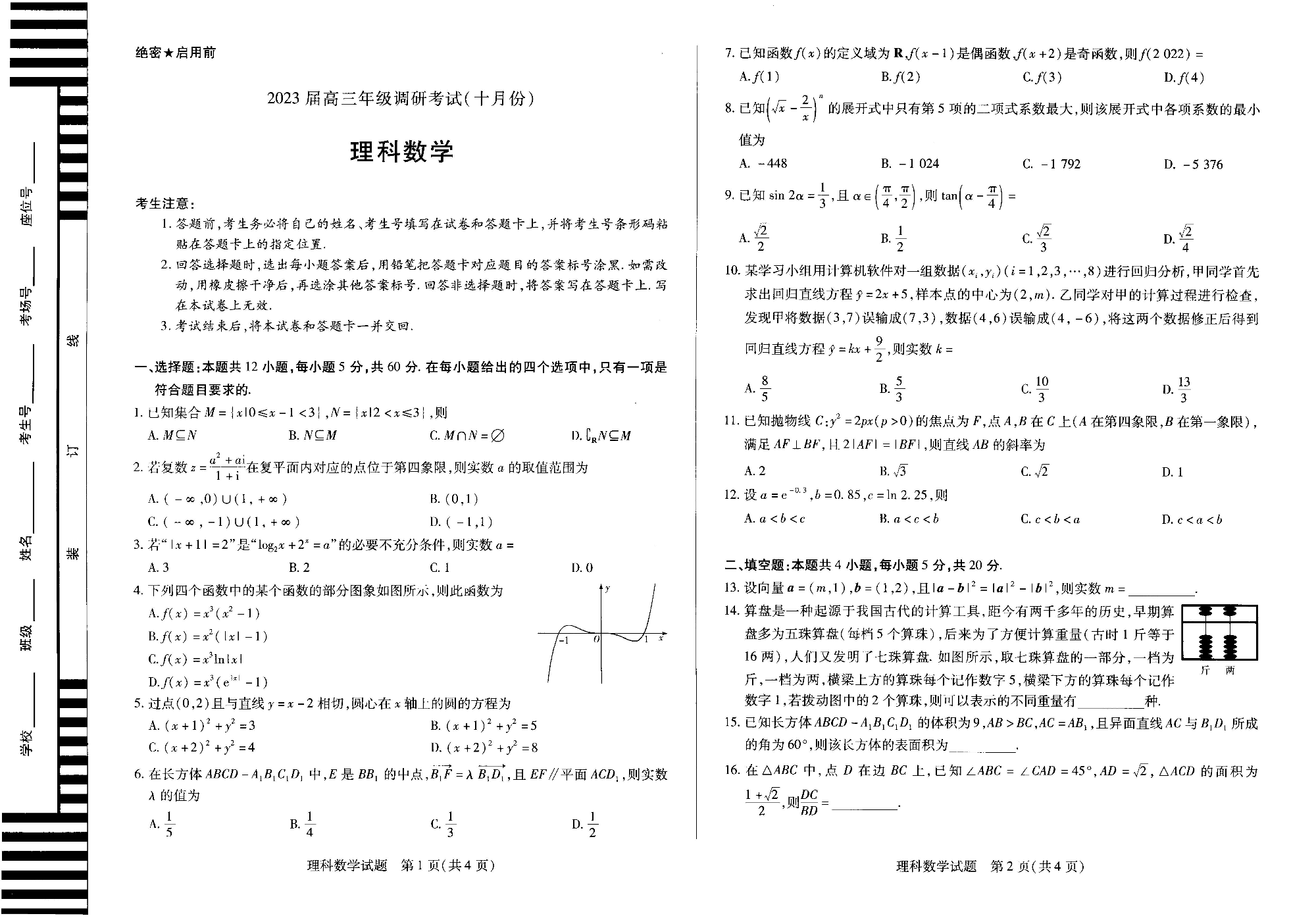 高三理数--河南省安阳市高三上学期毕业班调研考试(10月份)