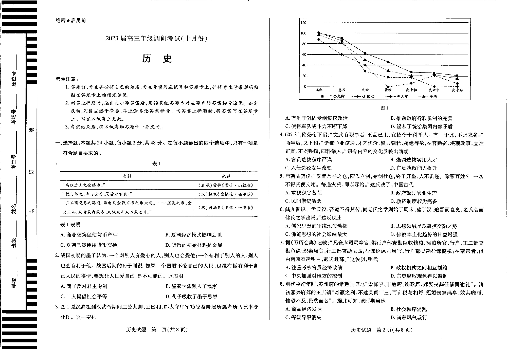 高三历史--河南省安阳市高三上学期毕业班调研考试(10月份)
