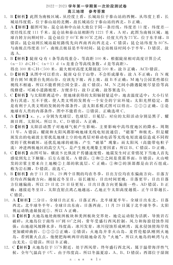 高三地理答案--河南省部分名校2022-2023学年高三上学期第一次阶段测试