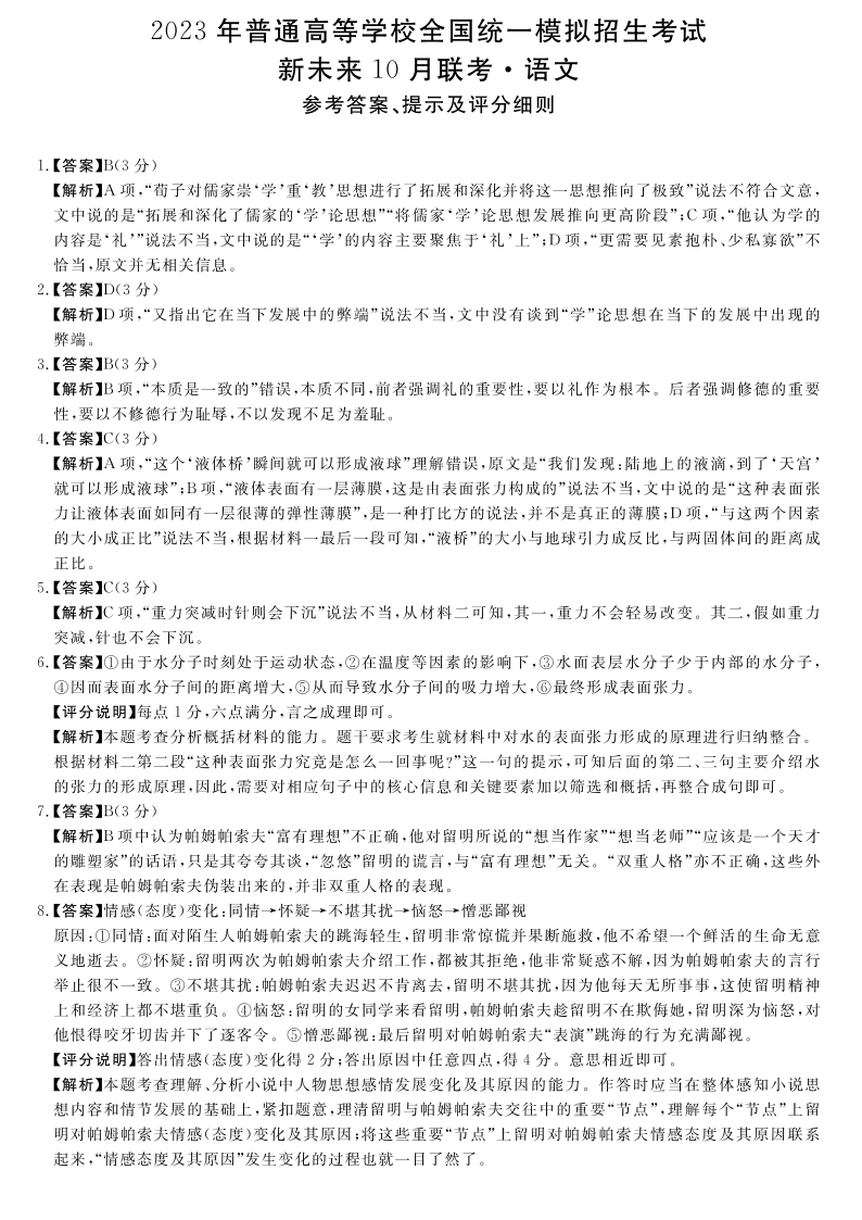 高三语文答案--河南省名校(新未来)高三上学期2023届10月联考