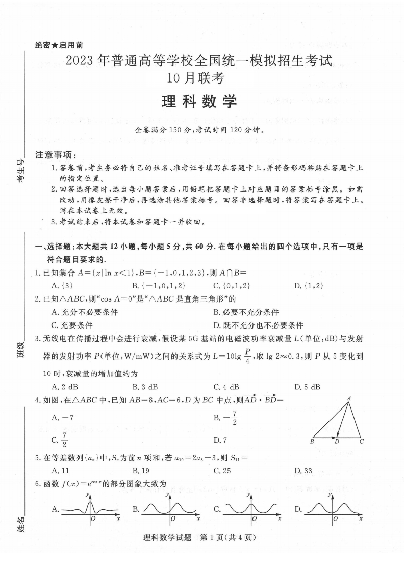 高三理数--河南省名校(新未来)高三上学期2023届10月联考10.28-29