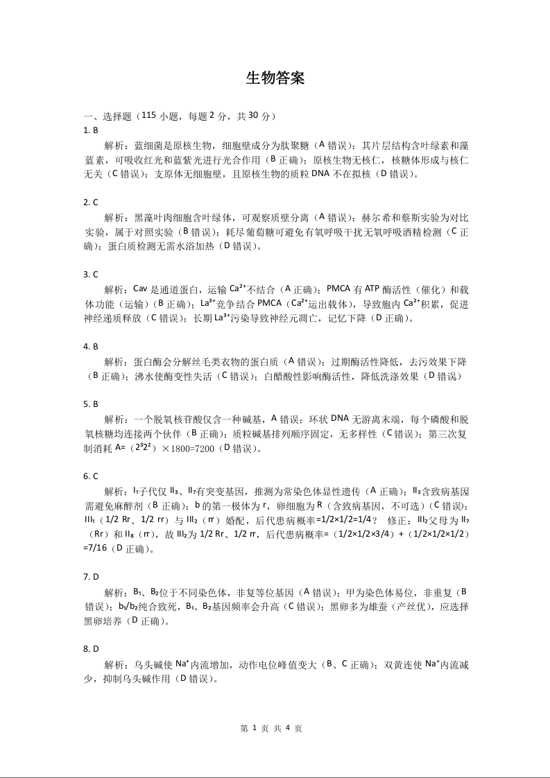 高三生物答案--山东省滨州市2026届高三上学期1月期末考试