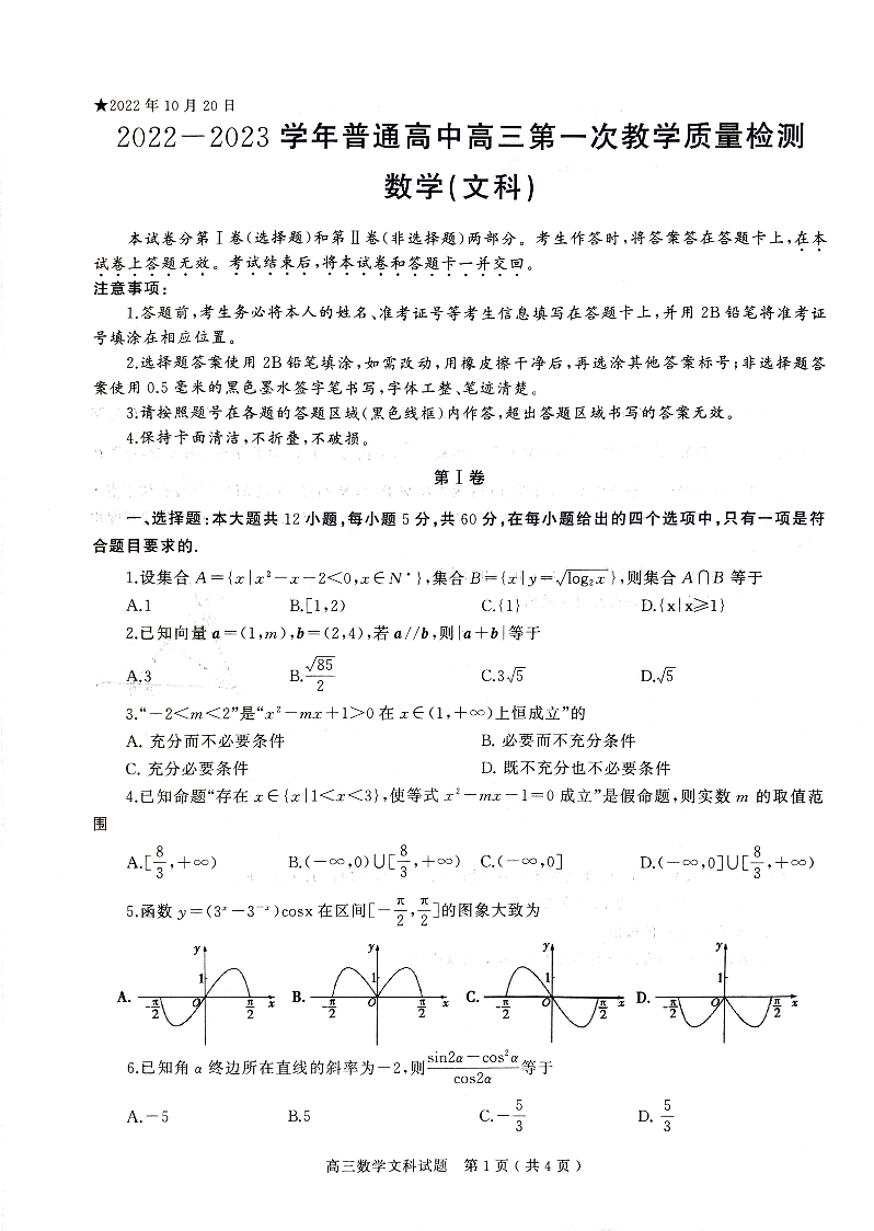 高三文数--河南省信阳市普通高中2022-2023学年高三第一次教学质量检测