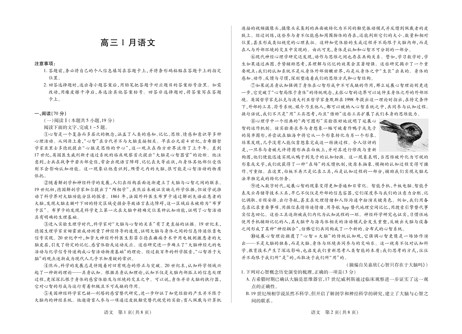 高三语文--安徽省多校大联考2025-2026学年高三上学期1月月考