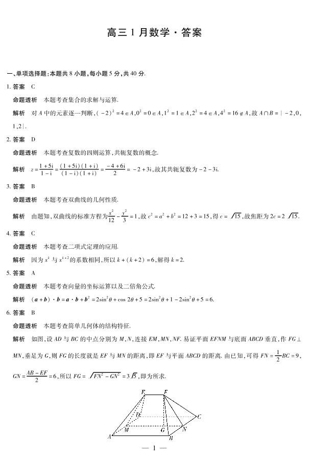 高三数学答案--安徽省多校大联考2025-2026学年高三上学期1月月考