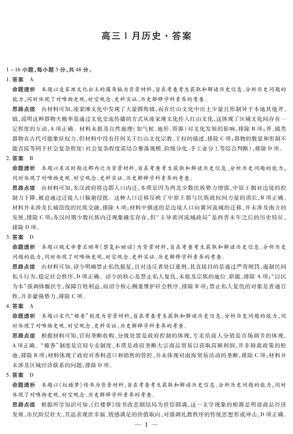 高三历史答案--安徽省多校大联考2025-2026学年高三上学期1月月考