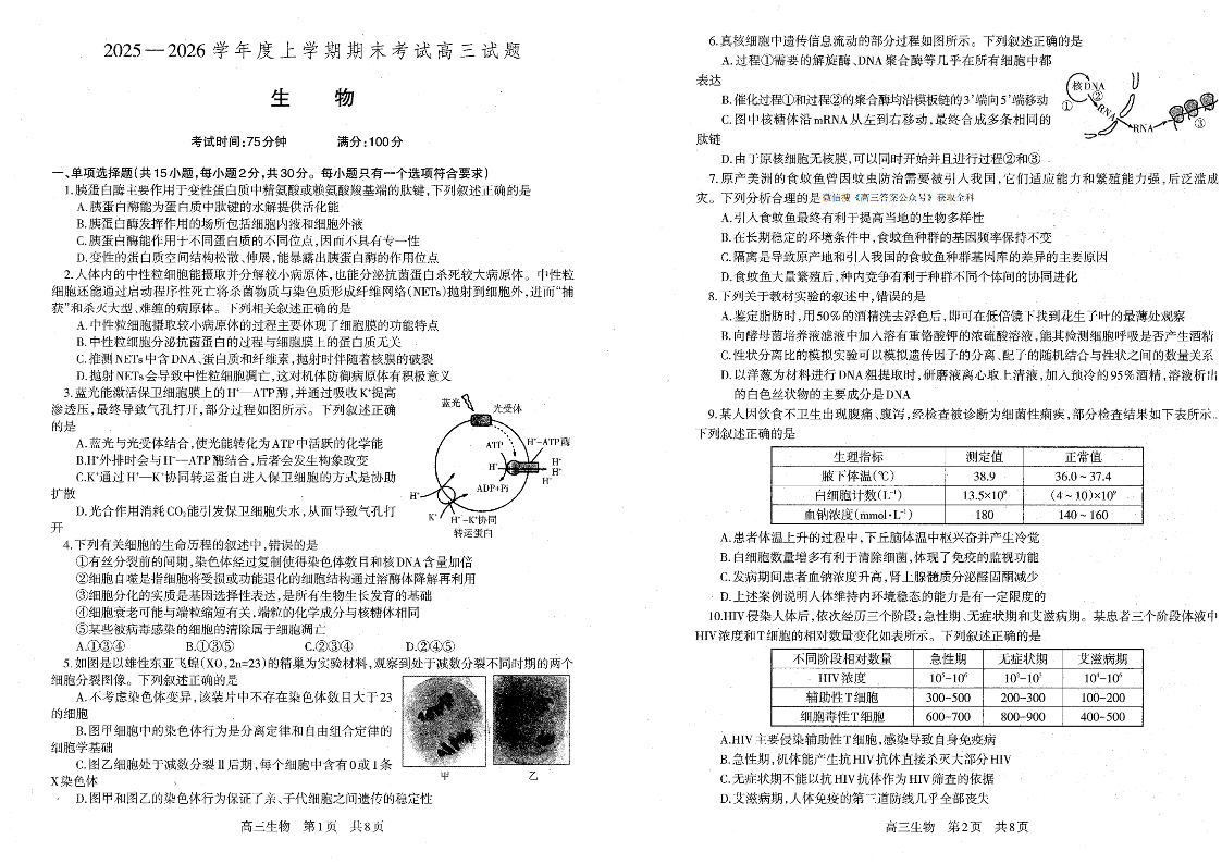 高三生物--辽宁省辽南协作校2026届高三1月期末考试