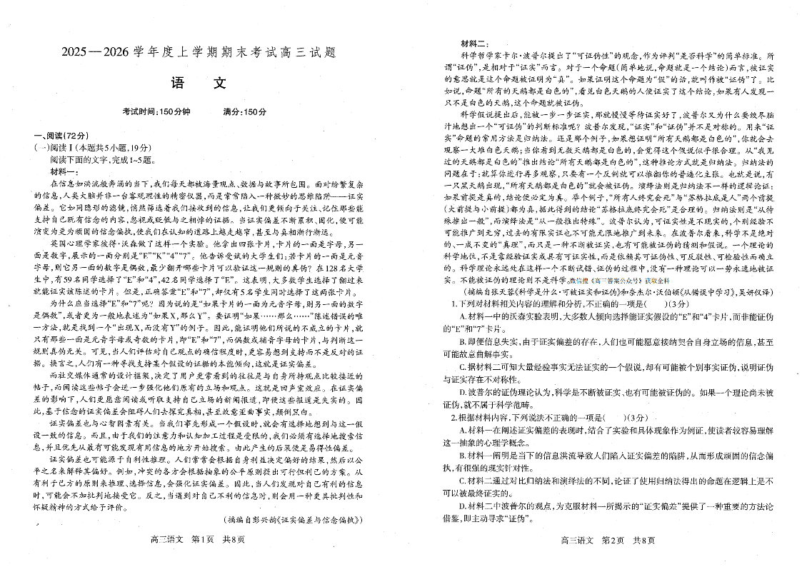 高三语文--辽宁协作校2026届高三上学期1月期末考试