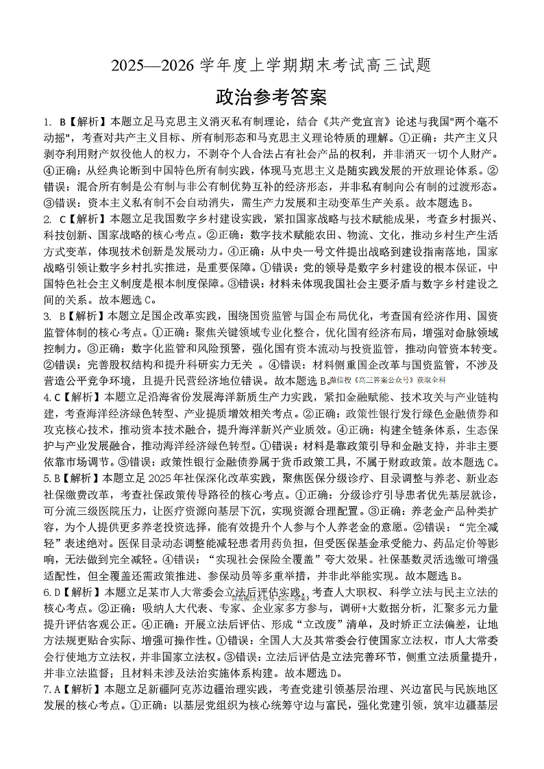 高三政治答案--辽宁协作校2026届高三上学期1月期末考试