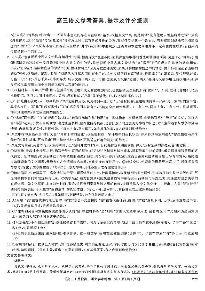 高三语文答案--九师联盟2026届高三1月质量检测