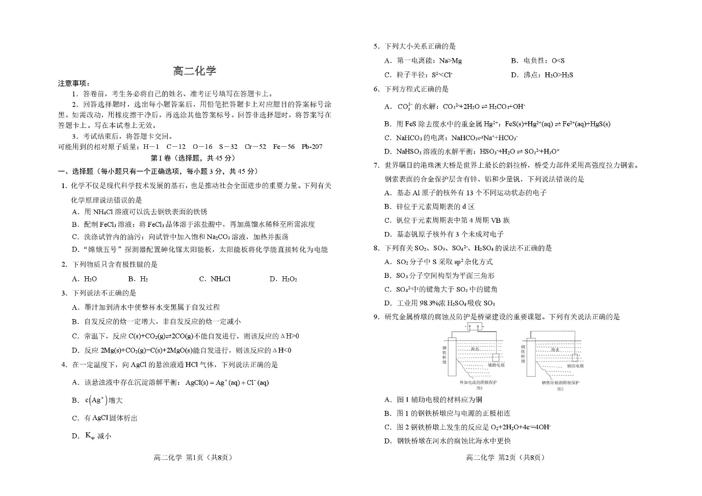 高二化学--吉林省普通高中友好学校联合体2025-2026学年高二上学期期末联考