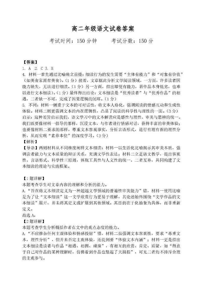 高二语文答案--辽宁省沈阳市五校协作体2025-2026学年高二上学期1月期末考试