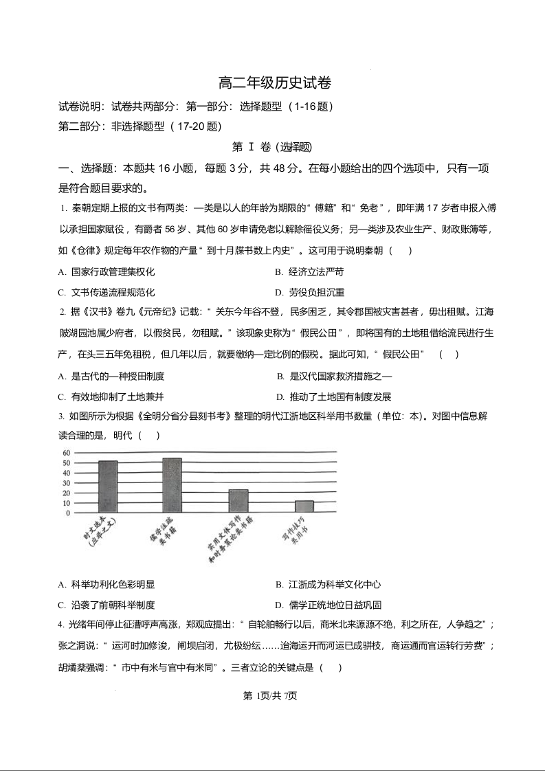 高二历史+答案--辽宁省沈阳市五校协作体2025-2026学年高二上学期1月期末考试