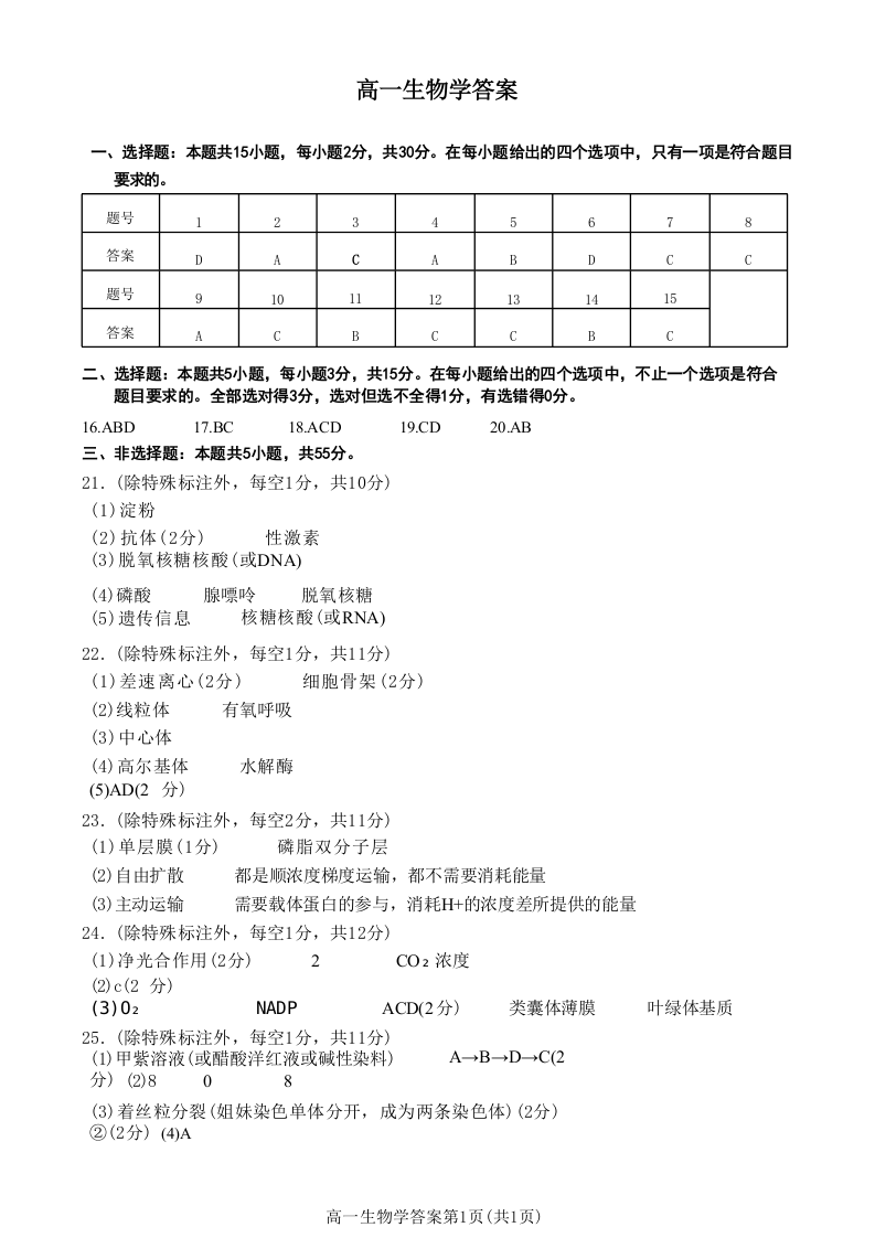 高一生物答案--吉林省普通高中友好学校联合体2025-2026学年高一上学期期末联考