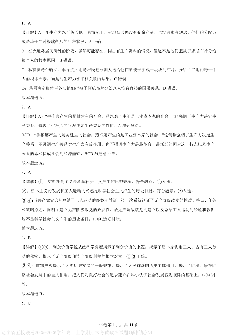 高一政治(解析版)--辽宁省辽南协作体2025-2026学年高一上学期期末