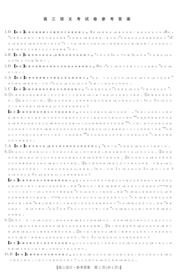 高三语文答案--河南省豫南名校高三上学期2023届10月质量检测