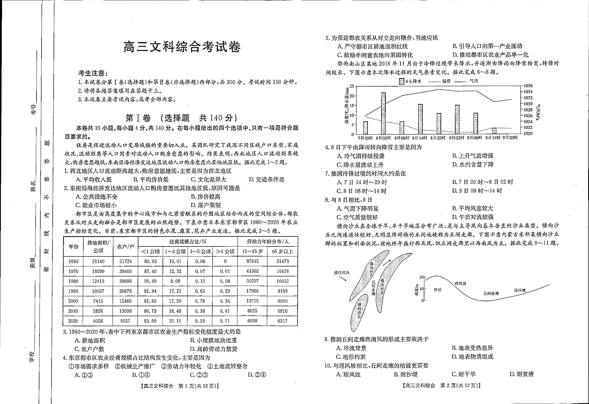 高三文综--河南省豫南名校高三上学期2023届10月质量检测
