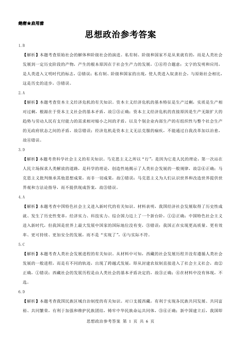高三政治答案--黑龙江省齐齐哈尔部分学校2023届高三上学期10月月考
