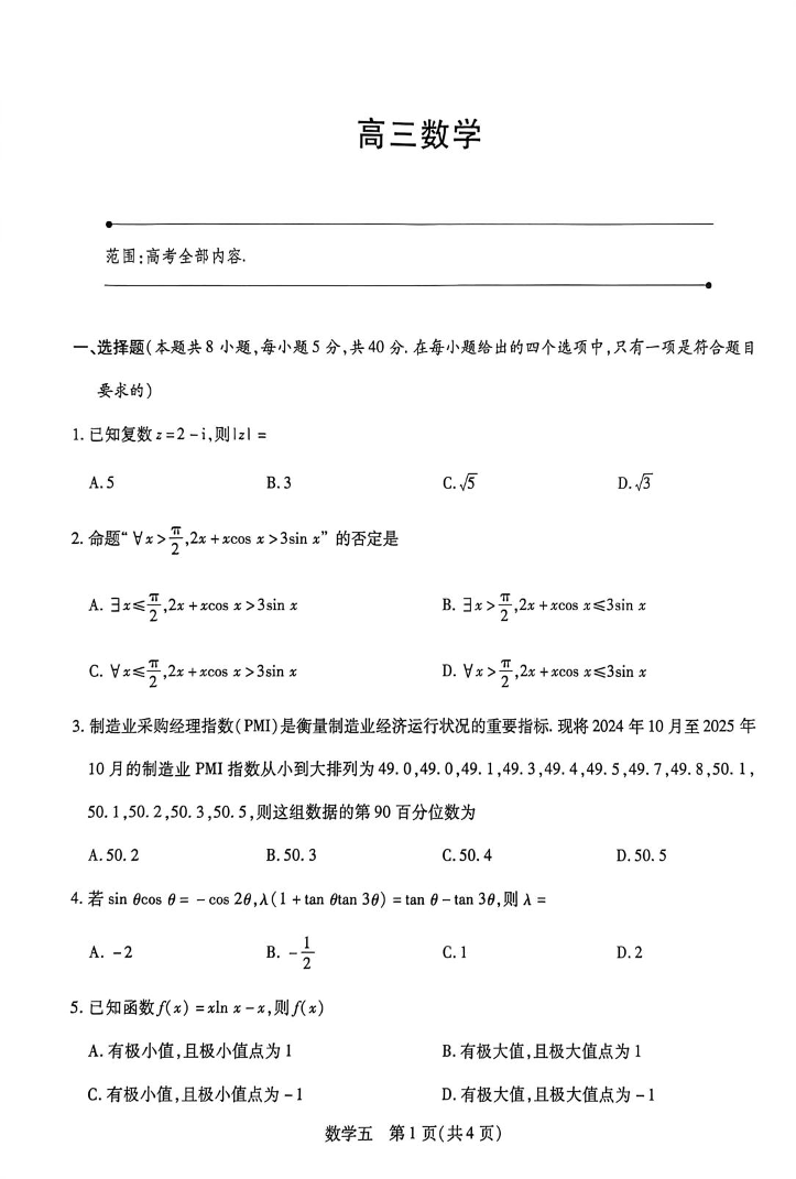 高三数学+答案--海南省海口市华侨中学2026届高三上学期二模