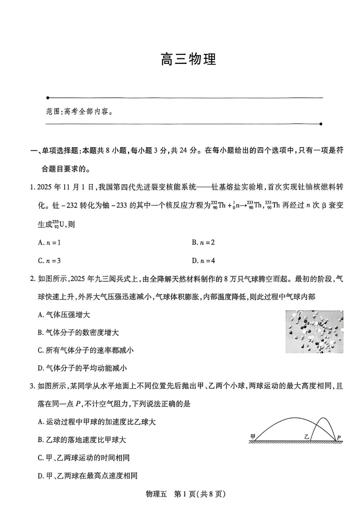 高三物理+答案--海南省海口市华侨中学2026届高三上学期二模