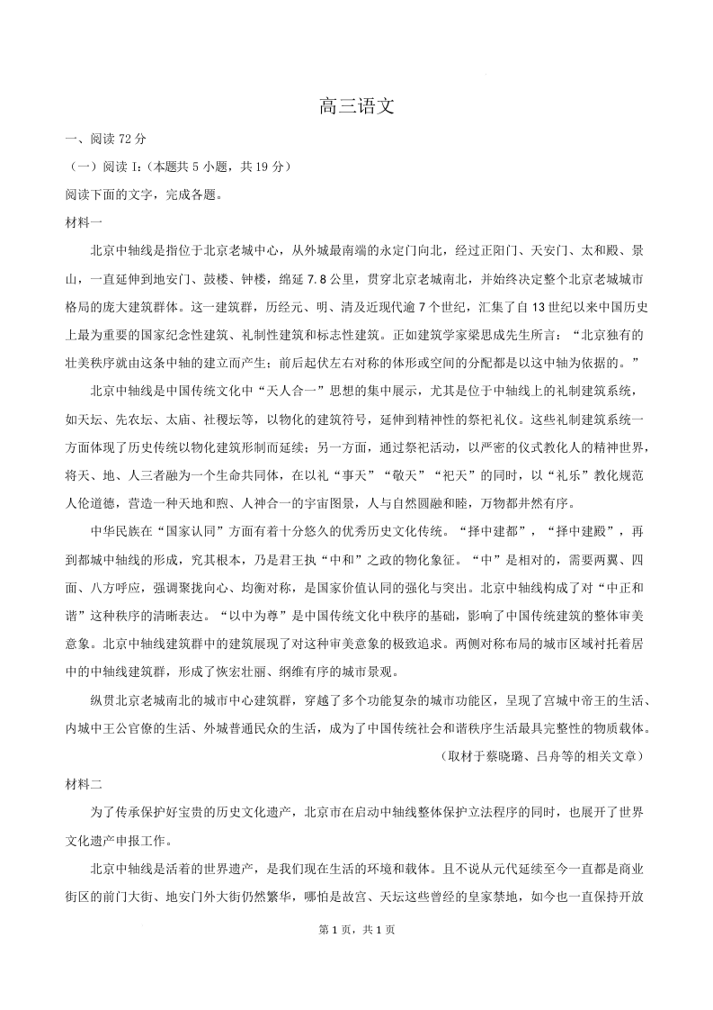 高三语文+答案--河北省沧州市十二校2026届高三上学期1月一模考试