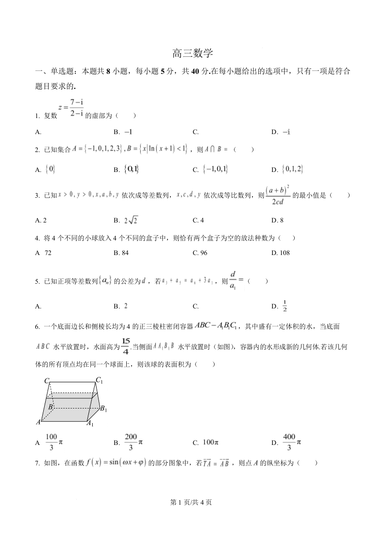 高三数学(原卷版)--河北省沧州市十二校2026届高三上学期1月一模考试