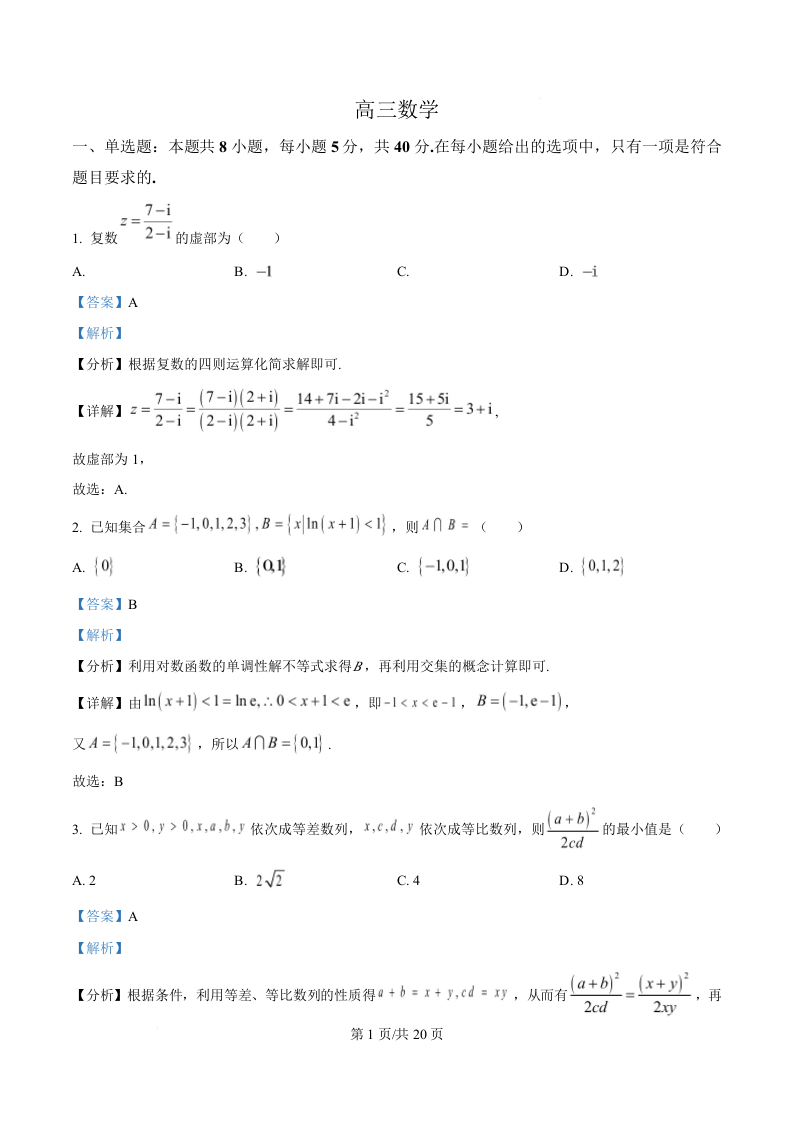 高三数学(精品解析版)--河北省沧州市十二校2026届高三上学期1月一模考试