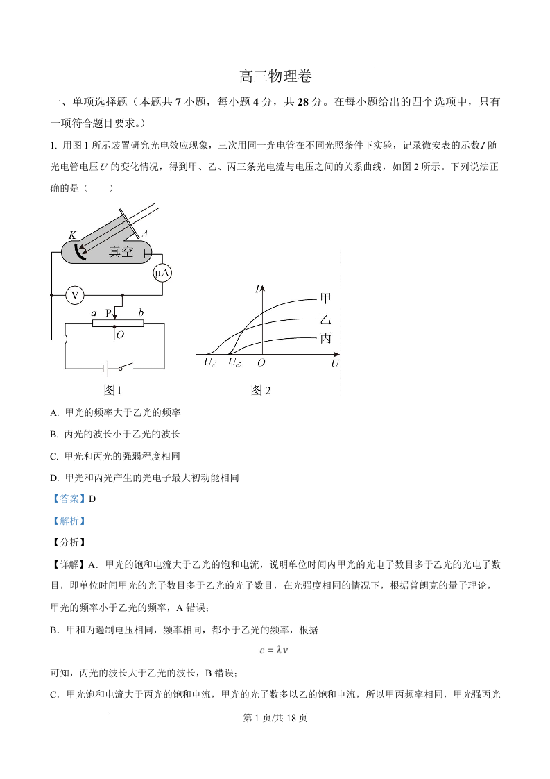 高三物理(精品解析版)--河北省沧州市十二校2026届高三上学期1月一模考试