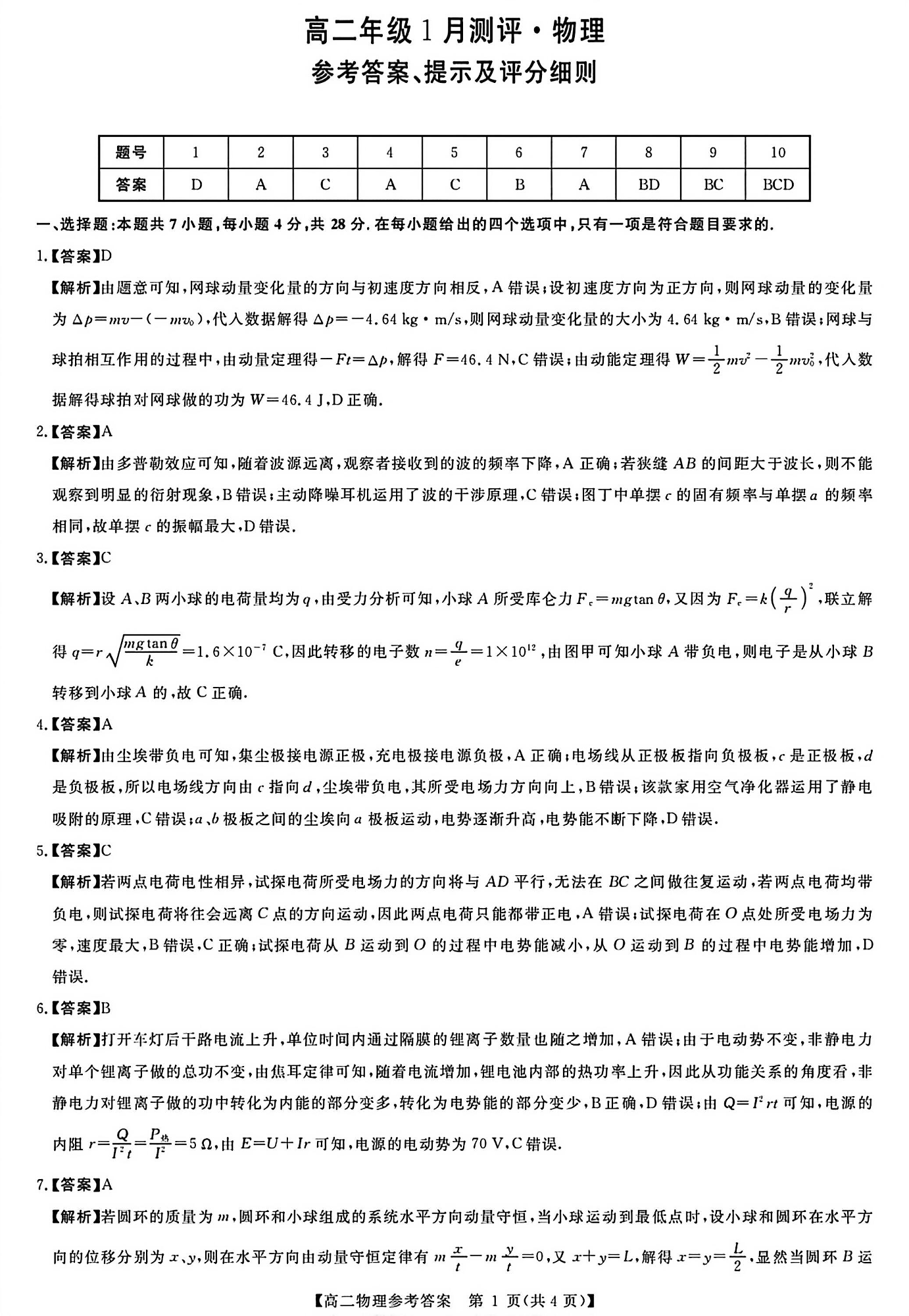 高二物理答案--河南新未来联考2025-2026学年高二年级1月测评