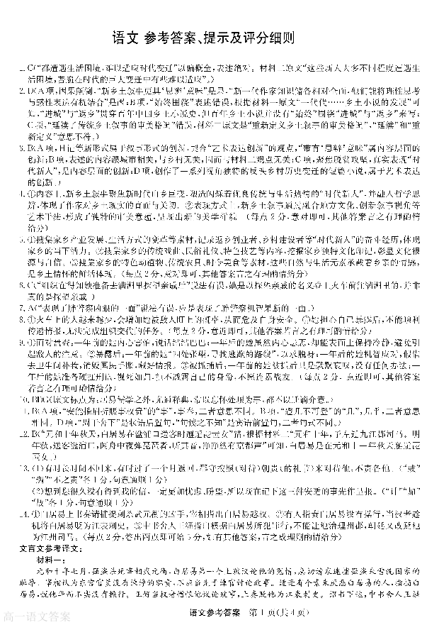 高一语文答案--黑龙江省齐齐哈尔市部分学校2025-2026学年高一上学期1月期末考试