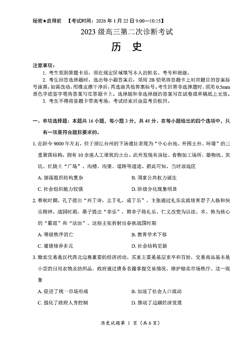 高三历史--四川省“元三维大联考”2023级高三第二次诊断考试(绵阳二诊B)