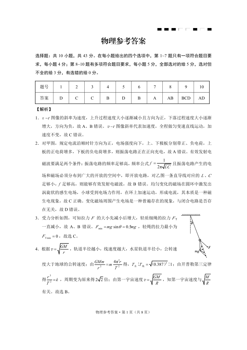 高三物理答案--重庆市巴蜀中学2026届高考适应性月考卷(六)
