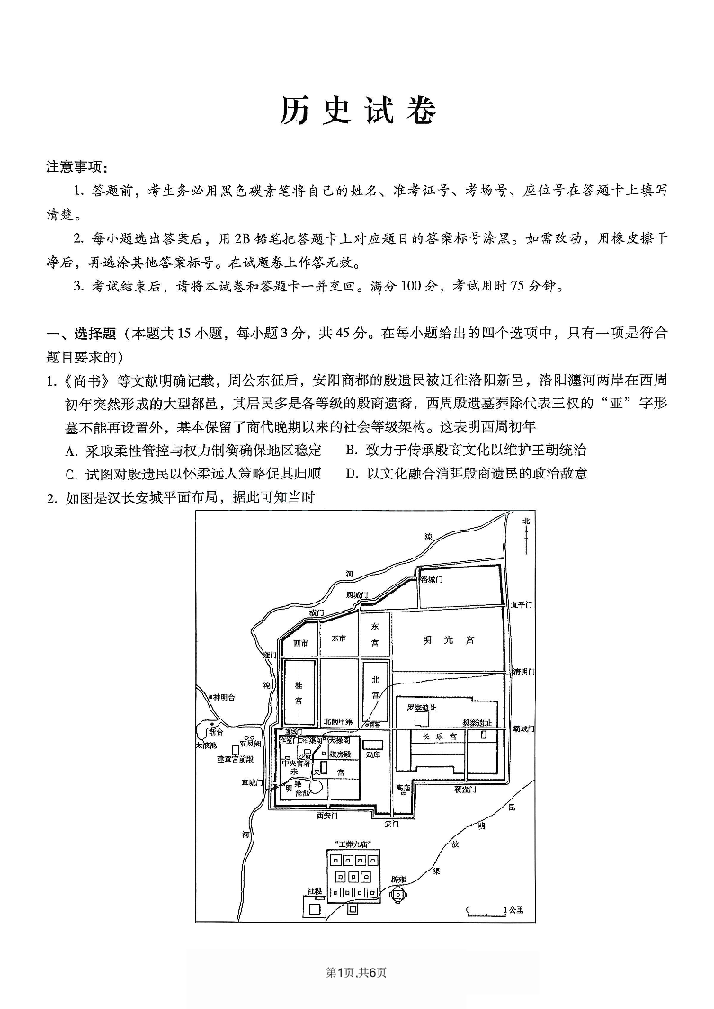 高三历史--重庆市巴蜀中学2026届高考适应性月考卷(六)
