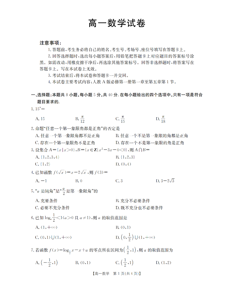 高一数学--四川省多校2025-2026学年高一上学期12月月考