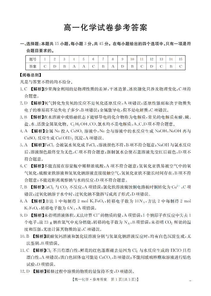 高一化学答案--四川省多校2025-2026学年高一上学期12月月考
