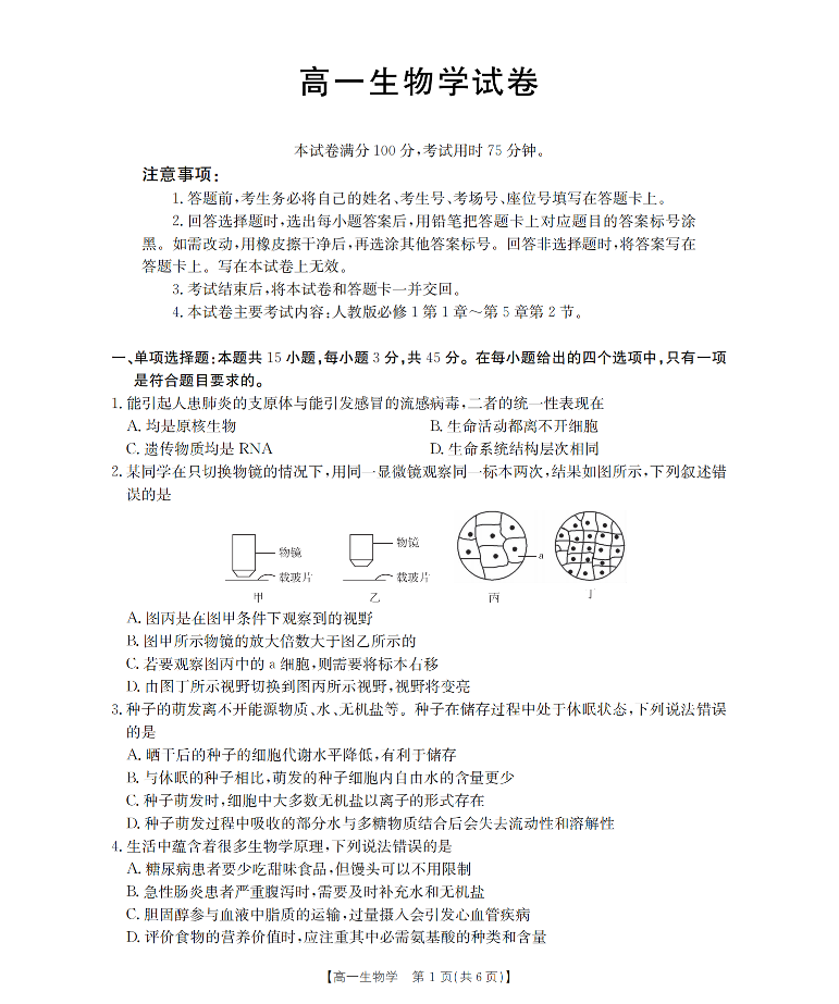 高一生物--四川省多校2025-2026学年高一上学期12月月考