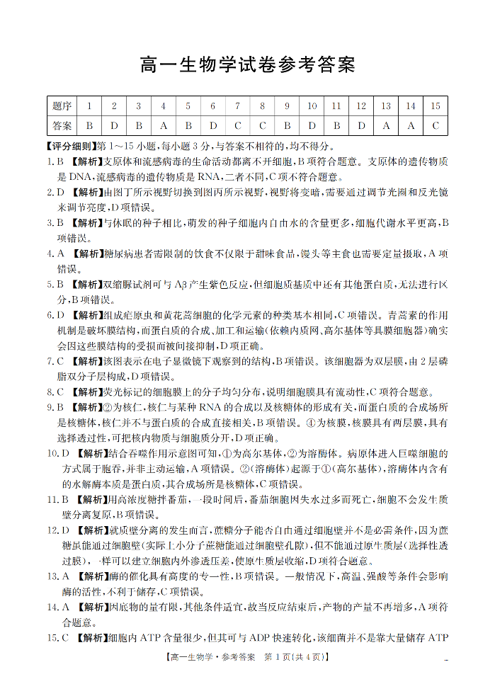 高一生物答案--四川省多校2025-2026学年高一上学期12月月考
