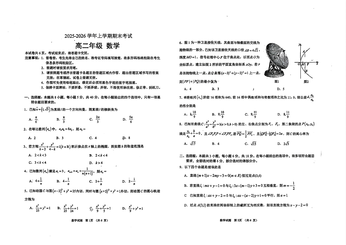 高二数学--吉林省长春市四校联考2025-2026学年高二上学期期末
