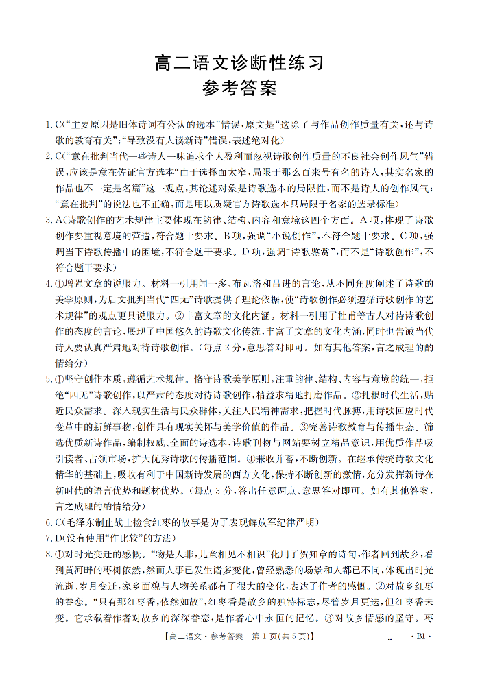 高二语文答案--山东省济宁市2025-2026学年高二上学期1月诊断性练习月考