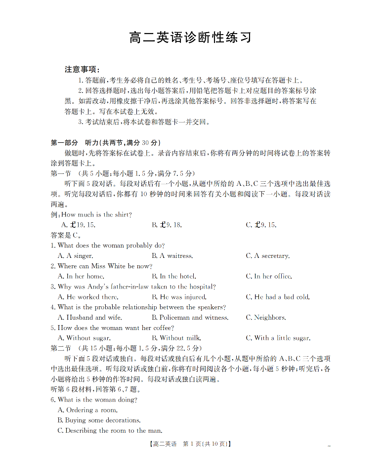 高二英语--山东省济宁市2025-2026学年高二上学期1月诊断性练习月考