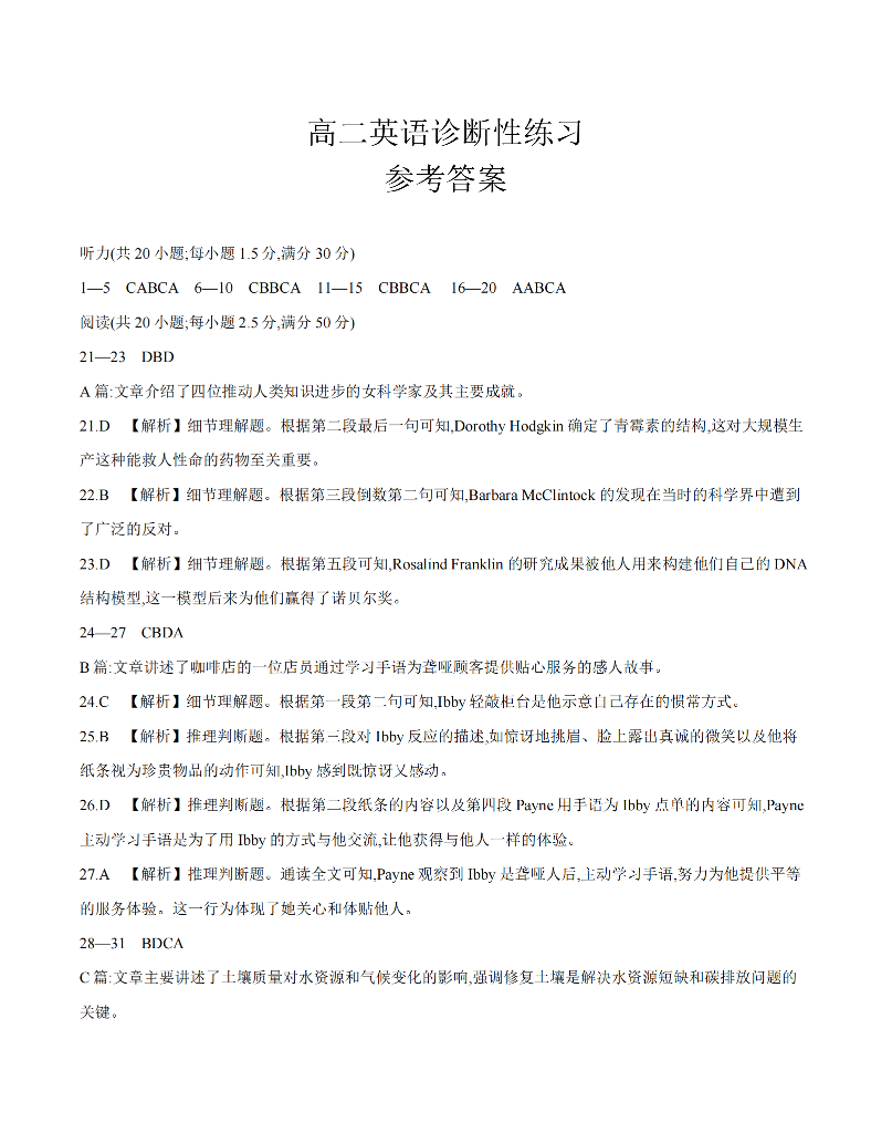 高二英语答案--山东省济宁市2025-2026学年高二上学期1月诊断性练习月考