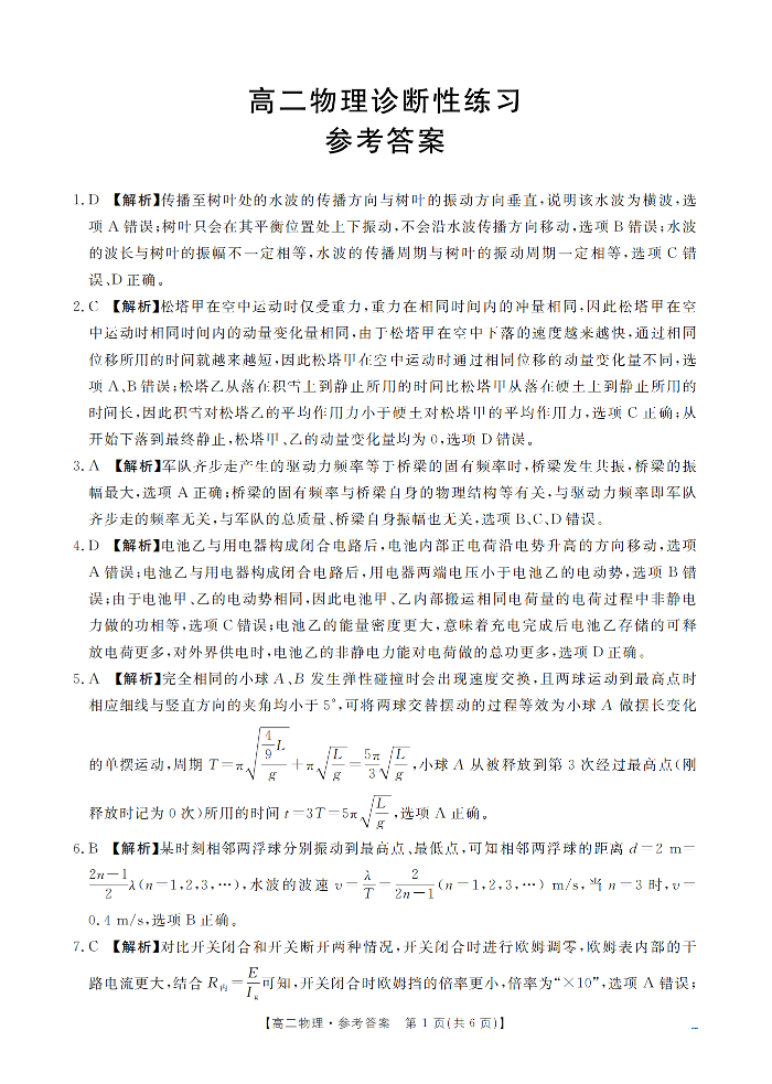 高二物理答案--山东省济宁市2025-2026学年高二上学期1月诊断性练习月考