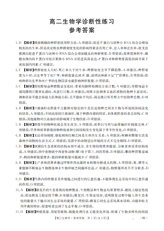 高二生物答案--山东省济宁市2025-2026学年高二上学期1月诊断性练习月考