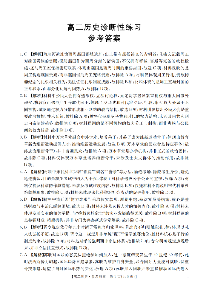 高二历史答案--山东省济宁市2025-2026学年高二上学期1月诊断性练习月考