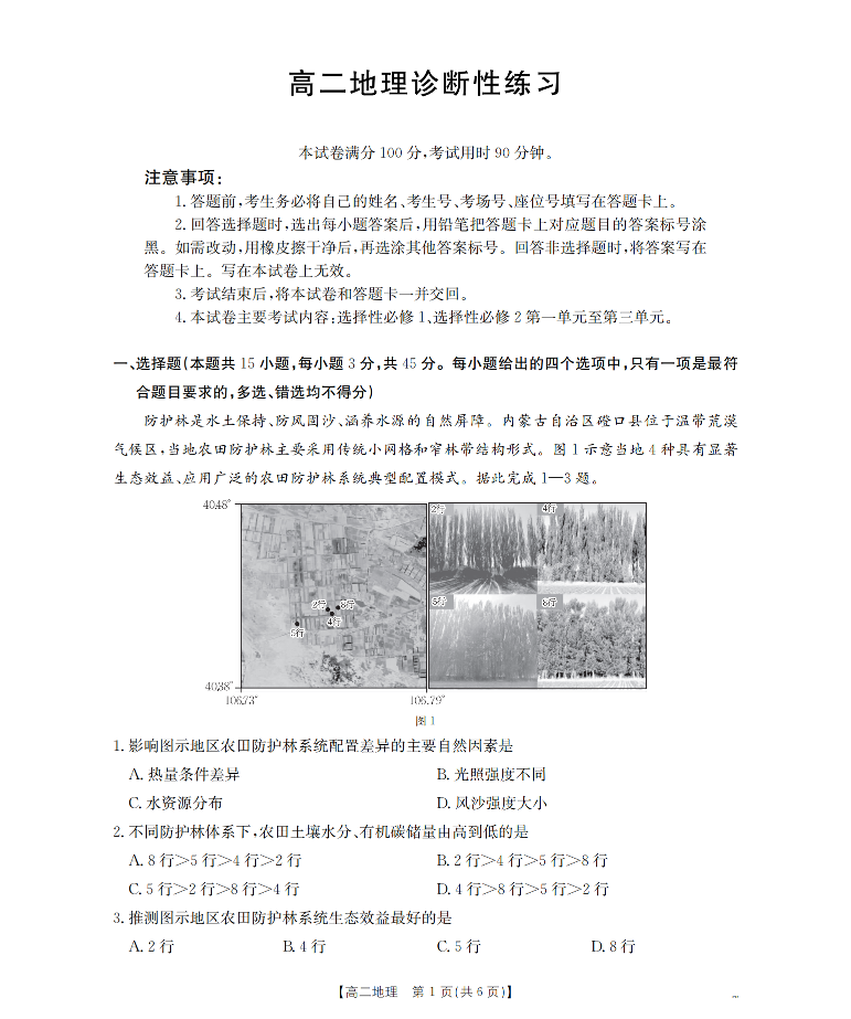 高二地理--山东省济宁市2025-2026学年高二上学期1月诊断性练习月考